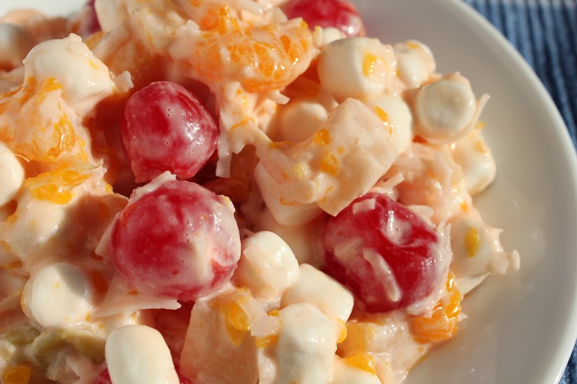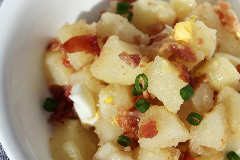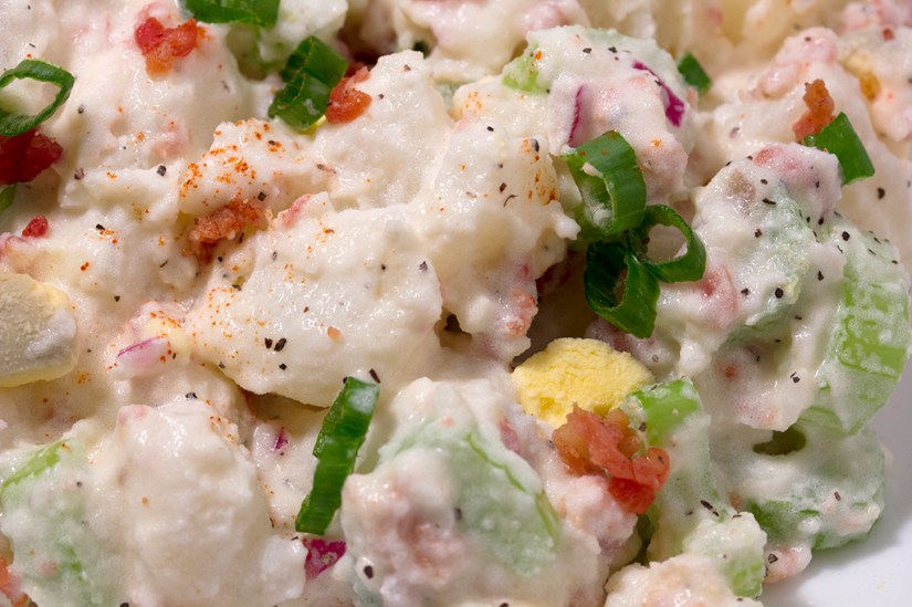 Guests always contribute the best dishes to our 4th of July parties. Two of the most consistent and delicious sides are Grandma Carole’s homemade potato salads and Aunt Bev’s Hawaiian salad, with a little extra just for Poppy.